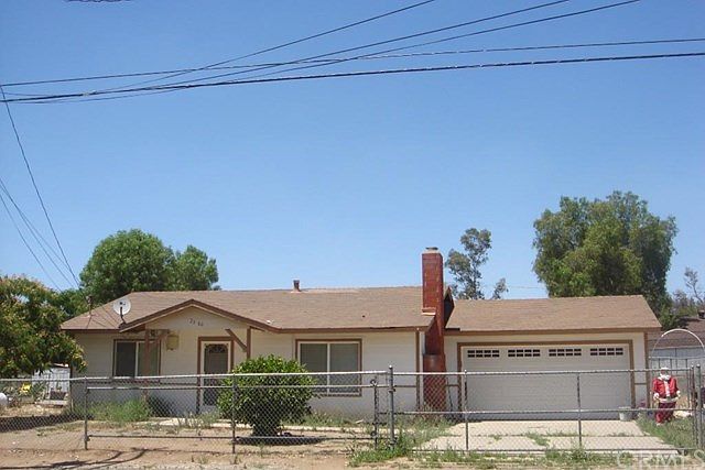 Charming 2 bedroom, 1 bathroom, 1-level home with 918 square feet. Home features fireplace in living room, informal eating area, kitchen, 2 bedrooms and a full bathroom. Kitchen offers gas range and French doors leading to large back yard on a double lot - 10,019 sq. ft. with propane tank. Patio area great for barbecues with family and friends and entertaining. Property is completely fenced with sliding front gate. Direct access to 2-car garage with garage door opener. Lemon tree in front yard. Lot is level. Property is offered in "as-is" condition-needs a little work. Lots of room for extra vehicles. Views of hills and mountains. Perfect for investors as a rental or as a starter home. Conveniently located within short distance to both the 215 and I-15 Freeways. new roof in 2016, insolation.