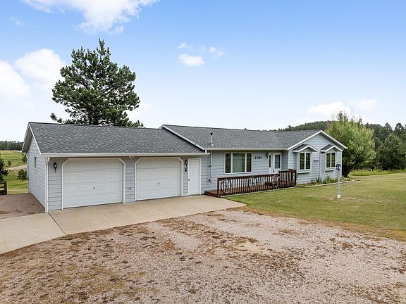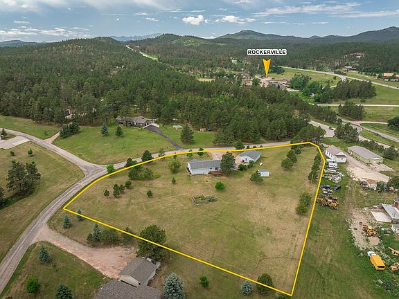 NO COVENANTS! Located in a neighborhood amongst the trees on the edge of Rockerville, this charming ranch-style home offers the perfect blend of comfort and convenience, with 3 spacious bedrooms and 2 full bathrooms. Step inside to discover the open concept dining and living room, perfect for entertaining guests or enjoying cozy evenings. The primary suite is complete with its own bathroom. Experience the ease of main level living with the added luxury of a private back deck. Enjoy your morning coffee or evening gatherings overlooking the beautiful 2-acre property. For all your storage and parking needs, this home boasts a 2-stall attached garage and an additional detached 3-stall garage. Plus, there's an RV hookup ready for your adventures. You'll be just a stone's throw from a local restaurant and only minutes away from both Keystone and Rapid City. Don't miss the opportunity to make this tranquil retreat your forever home!