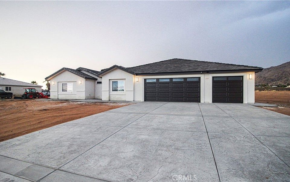 Stunning New Build! Custom porcelain counters throughout. Kitchen fully equipped with stainless steel appliances which features a waterfall island with bar seating, ambiance lighting under cabinets and entertainment center. Exquisite modern fireplace making this home perfect for entertaining or relaxing after a hard day. Home comes with custom built entertainment center and coffee bar. Bathrooms are designed with elegance including a master bathroom promoting a rain shower. Mission style walls and textured ceilings adds the personalized touch you've been looking. Massive 1100sqft 3 car garage is complete with epoxy floors. Crystal Pacific Window with lifetime warranty, electric water heater, Solar ready, double coated sanded stucco are just some of extra upgrades included in this home. This sophisticated home sits on an acre lot with picture perfect sunsets. You'll have enough room for your RV and all your toys.. This one won't last, call now to make your offer.