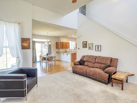 This lovely 2 story home is situated in the desirable Cross Creek neighborhood. As you enter the home, the vaulted ceilings, open floor plan and large windows combine to create a bright, airy living space. There is a gas log fireplace in the living room for cozy winter evenings. The dining room and kitchen, with newer microwave and dishwasher, offer plenty of room for entertaining and opens onto the generous concrete patio in the back yard for fun summer evenings! The large back yard is planted with tons of perennials which will be beautiful all summer long! Upstairs, the primary bedroom is very spacious and has its own full bathroom and walk-in closet. 2 more sizable bedrooms and another full bathroom complete the upstairs. Downstairs, in the Finished Basement, there is another Bathroom with a shower, a Family room with an Egress window and a 4th bedroom. The sellers have just had a BRAND-NEW FURNACE AND HOT WATER HEATER INSTALLED ONE WEEK AGO and the A/C unit had its yearly maintenance. In addition to the house being Wonderful, there is a 3-car garage that is fully drywalled inside. The community is beautifully maintained and offers a Pool, Clubhouse, Park, and Playground. The Vista Peak Schools are very well known for offering opportunities to kids in the Arts and STEM and Athletics. Come and take a look at this great home in a wonderful community and make it your own.