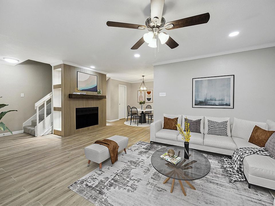 Rare corner unit that has been completely updated from top to bottom. New HVAC system, new interior paint, new vanities, new kitchen cabinets, new appliances, new flooring, and new light fixtures. Remodeled fireplace and wet bar. Wrap around decks on both floors with access from the primary bedroom. Ample space to have a garden and entertain outside. Garage parking and prime location. Don't miss out on this incredible home.