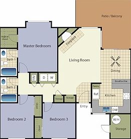 This massive 3 bedroom apartment with 2 bathrooms and 2 private balconies is perfect. Apartment has been recently rehabbed with crown molding, decorative fireplace, and 3 large bedrooms with TONS of closet space. Apartment also has central AC/heat, huge storage closet (10X4), plenty of linen closets and FULL size washer/dryer. Very large and spacious floor plan with 2 patios hidden in the trees.The community has large sparkling pool, spa, fitness center and sauna. Plenty of parking, friendly on-site staff, and gorgeous landscaping.