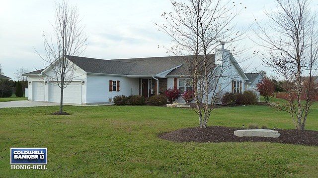 Home Sweet Home! This custom one owner ranch sits on an acre lot in a family friendly, country neighborhood, close to town. Home features 4 bedrooms, 3 full and 2 half baths including a half bath in the large heated 3 car garage! Living room features stone fireplace and custom woodwork throughout. Stainless Steel kitchen appliances. Sliding glass doors in Dining leads to large concrete patio overlooking spacious back yard. White trim package includes window cornices and crown detail. Open railing to partially finished basement. 2 Laundry rooms. Basement has a suite setup with a huge bedroom w/reading nook, craft closet and large custom closet w/laundry access AND full tile bath with walk-in shower! Perfect for multi-generational living. Adorable shed is 18X24 and has stamped concrete floor with a 6' front porch for enjoying the summer breeze,overhead door in back, water and electric. Entire lot has been professionally landscaped, includes mature maple and river birch trees. AGENT OWNED.