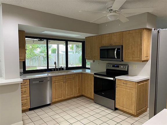 Great opportunity to make this house your own in much sought out Timber Creek neighborhood. This 3/2 home features new appliances, newly installed carpet, impact windows and doors, optional aquarium set up with surrounding cabinetry, enclosed patio, fenced in back yard. 2 car garage with impact garage door, built in cabinetry and bonus refrigerator. Roof installed in 2020. Centrally located near Town Center Mall and all major highways. Zoned for A rated public schools and close to 3 private schools.