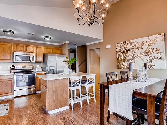 When you arrive notice the professional landscaping, new sod in front yard! As you enter a stylish living room,wood flooring leads into a dream kitchen with island and large eating area New SS appliances,garbage disposal,Oak cabinets,Crown molding,Vaulted ceilings,Spacious back deck/patio, Garden level family room adjacent to a spacious laundry room,1/2 bath Master bedroom has a 4 piece bath, walk-in closet ,2nd bedroom,full bath, large linen closet New Paint, Duration shingles, Newer Roof/Solar, New A/C, New Water Heater, New Carpet in Master Bedroom, Ceiling fan in Master/ Study. Over 7k in landscaping, approx 500 sqft deck off kitchen, Garage is finished with door going out to the back yard, Large Tuff shed in the back yard, New garage door springs. This home has been well maintained close to large park, E-470, Southlands, Aurora and Quincy Reservoir, Great Plains Park, Plains Conservation Center, Hiking Trails, DIA