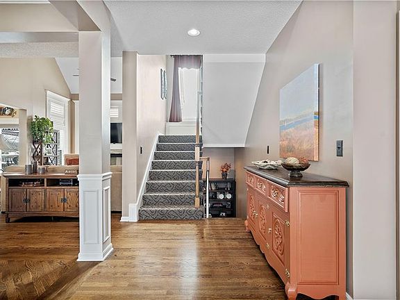 Lakeside living at its best! This custom-built, 1.5-story home offers over 3400 sqft of finished living area in highly sought-after Persimmon Hill. Updates include; Newer HVAC (8 years), Roof (2020), several new windows, hardwood floors on the first floor, main walkways, and 2 secondary bedrooms as well. Open plan with lots of natural daylight, soaring ceilings, and master bedroom is on the 1st floor., featuring hardwood floors and master bath updated with Onyx. Celebrate those special occasions in the formal dining room or sip your coffee in the breakfast room overlooking the lake. Spacious kitchen with island, granite countertops, stainless steel appliances, pantry, and laundry room steps away. Upstairs features 3 spacious secondary bedrooms, full bath, wood floors, and a catwalk overlooking the great room. The finished lower level has 9 ft ceilings, an office/or 5th bedroom (could also be used as sep living qtrs), full bath, and a huge family room that walks out to the park-like setting with beautiful lake views. Enjoy wildlife and sunsets from your deck or perhaps a little fishing is your way to unwind after a long day at work. Persimmon Hill offers amenities that include: 3 pools, tennis, pickleball, volleyball, walking trails, playgrounds, and a private fishing lake. Elementary and middle schools are in the community and new Olathe West is just steps away. The newly renovated Olathe Lake is just about 1/2 miles away and the new Cedar Niles Park & walking trails are within walking distance too. Better hurry, opportunities like this don't come along every day!