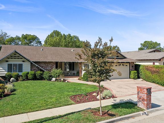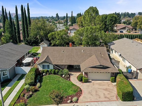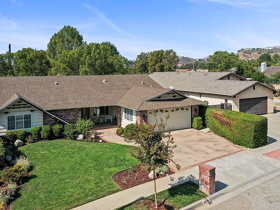 Welcome Home! This beautiful single story home is located on a private street surrounded by mountain views. As you drive up to this home, you will fall in love with the charming curb appeal that this property has to offer. This 3+2 home offers a large family room with vaulted ceilings, exposed rustic wood beams, gorgeous brick wood burning fireplace, large living room with room for a dining area, newer double pane windows, new sprinklers, new water heater, custom pavers in the front, new vinyl wood like floors throughout, new exterior and interior paint, solar tube, custom built in cabinets, updated hall bathroom with granite countertops and new fixtures, LED recessed lighting. The kitchen has granite countertops with travertine stone backsplash, new stainless steel appliances, new paint and new fixtures, new lighting. The kitchen is open to its own eating area, with vaulted ceilings and exposed wood beams. The master bedroom also has vaulted ceilings with exposed wood beams, a walk-in closet and a remodeled master shower with travertine and granite and custom glass enclosure. The backyard is absolutely beautiful with its parklike setting! It offers plenty of grass and room for a pool/spa and more. The yard also features a gorgeous patio and pergola.