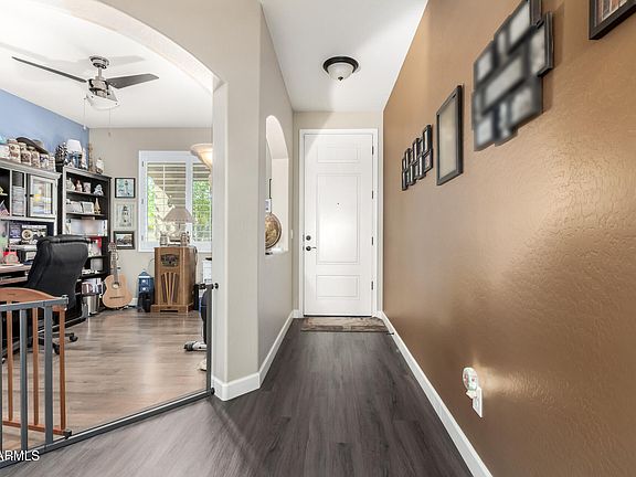 You'll LOVE this beautiful 4-bedroom, + office & 2.5 bathroom home w/ POOL & PAID OFF SOLAR in Watson Estates! Low-care landscape, front porch, and 2-car garage w/cabinetry. The home exudes sophistication with plantation shutters, designer paint, tons of natural light, and wood-look flooring. The inviting living room perfectly flows onto the impressive eat-in kitchen w/ SS appliances, granite counters, a pantry, staggered wood cabinetry, and an island w/breakfast bar. Enter the main bedroom to find a walk-in closet and an ensuite that features dual sinks, shower w/dry-off area, & patio access. Enjoy the entertainer's backyard featuring a covered patio, extended pergola, artificial turf, and a sparkling pool! Lennox A/C is only 1 year old & best of all - NO neighbors behind!!!