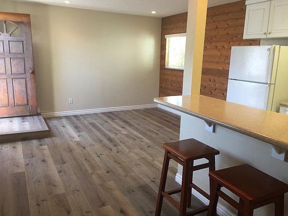 One tenant only, no animals. Everything included in rent except cable bundle. Remodeled single level one bedroom one bath duplex at the beach in Del Mar. Newer plank flooring, newer cabinets, bathroom, baseboard, wall heater, window and blinds. Totally buffed out. Refrig, exclusive use washer and dryer included. Back patio with plenty of room for R&R space plus water proof shed. 3/4 mile to oceanfront restaurants and a mile to village of Del Mar. One person occupancy no animals. Available September 1st 2025 for one year lease. Owner pays SDG&E, Water/Sewer/Trash/Gardener