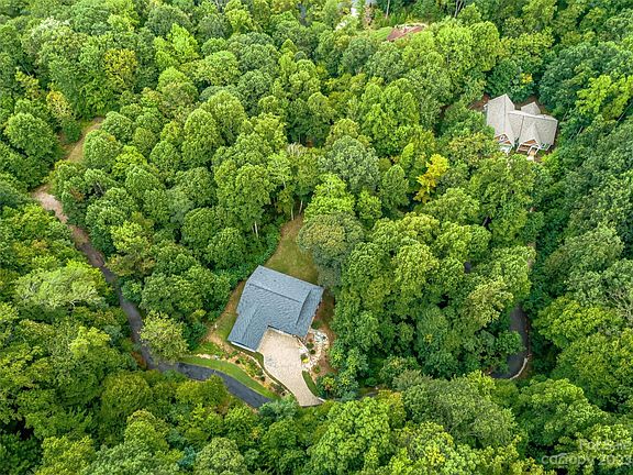 Step into a private treehouse on over 5 acres in a secure gated community, seamlessly intertwined with the tranquil Pisgah Forest. There's 2,161 sq ft of main-level living space, w additional 2,161 sq ft of uncharted potential on lower level, illuminated by ample windows that blur the line between indoors and the lush outdoors. Your front porch feels like a leafy canopy, while the treetop fire pit serenades you with birdsong above the creek that runs through both lots. Indoors, a gourmet kitchen awaits, adorned w pristine white cabinetry, marbled countertops, & a 7-foot island. Cafe appliances ensure culinary bliss. Marble countertops and custom tiles grace all bathrooms. Other inspiring features include a pet bath, tankless h20 heater, & a pot filler over stove. Roughed in plumbing in the basement anticipates future expansion. Convenience meets nature, with proximity to Asheville, Hendersonville, Brevard, and AVL Airport. Just the home on 1.56 acres is also available. See MLS 4066987.