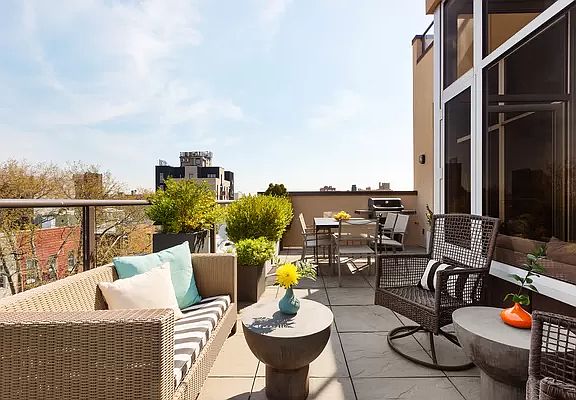 TRULY EXTRAORDINARY, TOTAL PACKAGE PENTHOUSE Rare and unique, the Penthouse opportunity at 238 Ainslie is sure to exceed all your expectations and check every box on your dream home list: TWO private terraces, covered parking space, soaring ceilings just shy of 11', towering floor-to-ceiling windows, iconic Manhattan skyline views (Downtown & Midtown), private storage room, key-locked elevator opening to your private full floor, real estate tax abatement, absurdly low monthlies, in-unit W/D w/ vented dryer, Nest for Central A/C + Heating, elegantly proportioned layout, quiet/peaceful disposition. THE ARRIVAL: As you step off the keyed elevator and directly into your full floor, floor-through penthouse, you're greeted by warm sunshine and friendly tree-tops streaming through towering, floor-to-ceiling glass windows. LIVING / DINING / ENTERTAINING: *Crafted with a keen eye for space planning, the living wing of the home achieves an open concept while also allowing for sensible separation. *A dining nook could accommodate a banquette with tulip table, the living room easily accommodates your sectional, and you could sip your morning coffee in the open kitchen while enjoying the Manhattan skyline. *Extra tall cabinets, stainless steel Bosch & Samsung package, French-door fridge, Bosch five-burner range w/ convection oven, and a full-sized dishwasher highlight the chef's delight kitchen TWO PRIVATE TERRACES (approximately ~565 square feet total): *The North-facing terrace clocks in at nearly 300 square feet and offers sweeping Manhattan skyline views, including the Empire State Building, Freedom Tower, Hudson Yards, and the Chrysler Building. *The South-facing terrace measures nearly 265 square feet and provides a tranquil retreat. *Entertainer, Gardner, Green Thumb's Dream. Plenty of room for gas grill, south-facing garden, massive outdoor dining table, and your entire network of friends & family. BEDROOM WING: *The spacious bedroom accommodates a king set and peers onto the south-facing terrace through near 8 Foot panels of glass. *Tastefully finished bathroom includes sleekly tiled tub apron, Maax jacuzzi, Toto Dualmax toilet, extra-wide sink basin, and slate stone floor. THE AMENITIES: *Covered parking space measuring more than 20 Feet long by nearly 8 Feet wide. Enough for an SUV and Additional Storage Cabinet. Garage door clicker access! *In-unit Washer & Dryer w/ vented dryer. *Key Locked Elevator which drops you directly home. *Private Storage Room. *Bicycle Area. *Panoramic Rooftop, 360 Degree Views of the complete Manhattan Skyline and Brooklyn. *Fully Central Heating & Cooling via Nest. NEIGHBORHOOD: *Straddling the dynamic, hectic Bedford Avenue epicenter and the avant-garde cultural/music/art scene of Bushwick, The Sette Condominiums on Ainslie Street offers an enviable combination of tranquility & access. *Just three minutes walk to the Graham L-Train stop and 11 minutes to Union Square. Skip the Bedford scramble! *Many fantastic eateries, cocktail lounges, and shopping options: *Grimm Ales *Excellent Thai right downstairs at Sage *Pheasant *CTown Grocery is a block away and always has excellent produce *I'm obsessed with canolis, Fortunato Brothers has the best *Lots of great little coffee shops, Hungry Ghost is one of my favorites. Also Maison du Tsuru *Edith's does made from the mother, sourdough bagels. I eat too many bagels ;) *Northen Bell for good Southern food *Unassuming but excellent Taiwanese (original is in NoHo) A-Pou *Claudia's for fantastic Guatemalan *Fantastic baguettes at Nick & Son's Bakery *Awesome upscale grocery and coffee spot, Campbell's