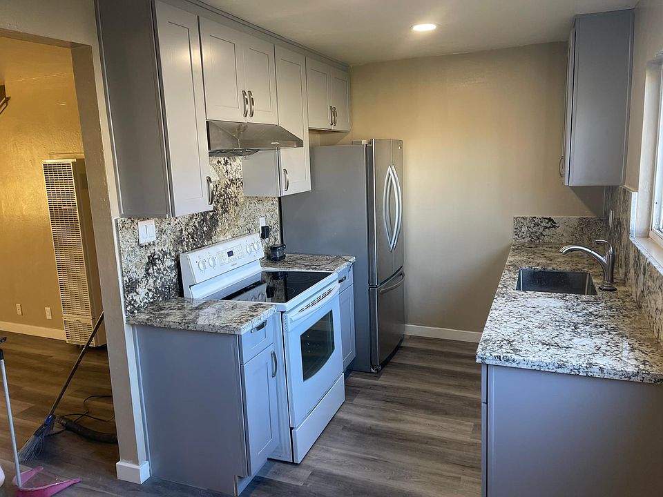 Newly remolded apartment with new sink, garbage disposal, kitchen hood, floors, cabinets, lighting, bathroom vanities and paint. Remolded townhouse apartment with new sink, garbage disposal, kitchen hood, floors, cabinets, lighting, bathroom vanities and paint. This apartment building is close to highway 880 and 238. Drivable to bayfair bart station. Walking distance to Walmart, In n out, and starbucks. -$30 credit check per persons over the age of 18 living in the apartment. - One car parking spot - Ceiling fan - Extra Storage - Laundry facility on site - Wall heater - No dogs/cats Owner pays for water and garbage.