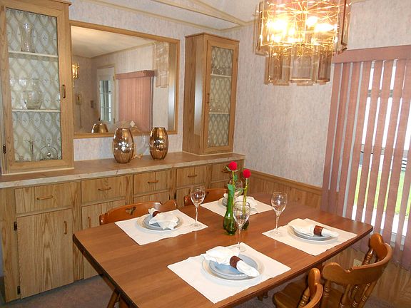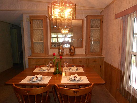 This beautiful lakefront property - located on a peaceful section of Alpine Drive - has been occupied by the original non-smoking/non pet-owning homeowners since 1986. The envy of many non-lake front home-owners, this double-wide home features a large back yard that leads to a calm, tree-lined lakefront. The spacious and open floor plan (kitchen, dining room, and huge living room) is perfect for entertaining or relaxing while watching the sunset from the living room, or the screened-in porch. The kitchen has a large bay window above the sink (presenting a full view of the lake), a skylight, and a convenient breakfast bar; the dining room has a built-in/ mirrored hutch for crystal, china, and additional storage; the living room has two skylights, two large windows, and a sliding glass door leading out to the screened-in porch, complete with a glass-top table and four chairs. Modestly furnished, this gently lived-in home features a ceiling fan in each room, including the full bath. The large master bedroom features corner windows, a walk-in closet and large 3/4 bath (with a seated shower, vanity with drawers, linen closet, and window); the second or “guest” bedroom features one window and a walk-in closet. The large full bath, located directly across the hall from the second bedroom has a vanity, linen closet, and a small window for ventilation. This home also has an office with a small window, a built-in desk and cabinets – the perfect spot for checking your emails from family and friends! This well-maintained property also comes equipped with a new clothes washer, a finished/sealed driveway, central air conditioning/heat, and new outdoor siding.