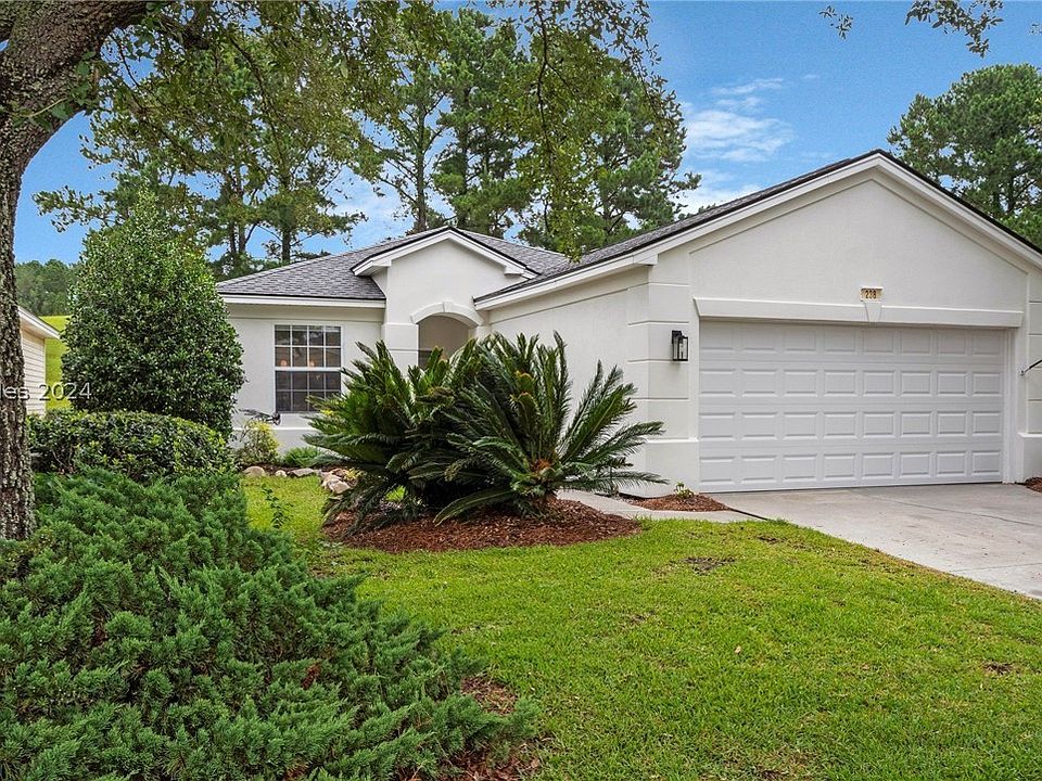 Charming cottage located behind Sun City gates. Tranquil home features 2 bdr/2 bth, bamboo & Slate floors, white kitchen w/ quartz counters & serene atmosphere. Abundance of windows throughout the home are adorned w/ custom shades. Updated kitchen features SS appliances, white cabinets & quartz counters. Extra room w/ built-in organization & a pop-down desk, perfect for an at home office/crafts. Custom closets throughout. Guest bdrm offers a full-size Murphy bed w/ nightstands. Bathrooms updated w/ quartz counters, main bath walk-in shower w/ a seat to relax in. Outside to the back patio, beautiful green grass creates a peaceful oasis.