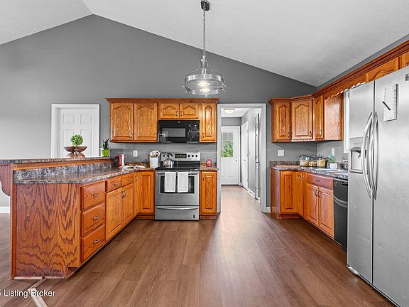 Welcome to 238 Beaver Dam Creek Rd, a beautifully updated 3-bedroom, 2-bath home offering approximately 1,400 sq. ft. of living space in Leitchfield city limits. Conveniently located off William Thomason Byway, you're only minutes from schools, shopping, restaurants, the hospital, and all area conveniences—yet still enjoy a quiet, private setting. Step inside to an inviting open floor plan with a soaring vaulted ceiling, fresh paint throughout, and all-new luxury vinyl plank flooring. The kitchen features custom-built cabinets, perfectly designed for both style and functionality.
