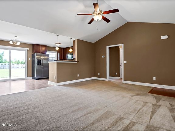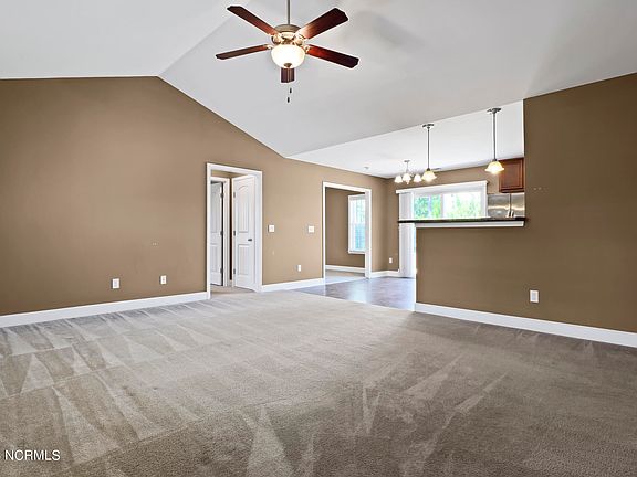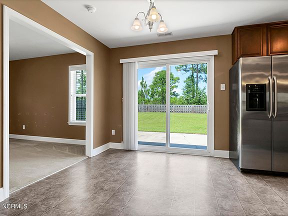 Ready for your retreat close to shopping, restaurants, Surf City beach, here you go. Located in the desirable community of Neighborhoods of Holly Ridge. Great layout 1460 sf, 3 bedroom plus flex room, 2 bath home with nice front porch. Entering the great room with open floor plan, vaulted ceiling and tons of natural light will leave you delighted. The stylish kitchen includes stainless steel appliances, wood cabinets and sit down bar with hanging pendants, open to great room making it perfect for entertaining. The spacious master bedroom suite includes, ceiling fan, walk in closet, dual vanities. Spacious and private fenced backyard backs up to open space, and the patio is perfect for grilling with friends making this a truly an exceptional space! Minutes to the Beach on Topsail Island, Backgate, Marsoc at Stone Bay, MCAS and easy commute to Wilmington and Jacksonville
