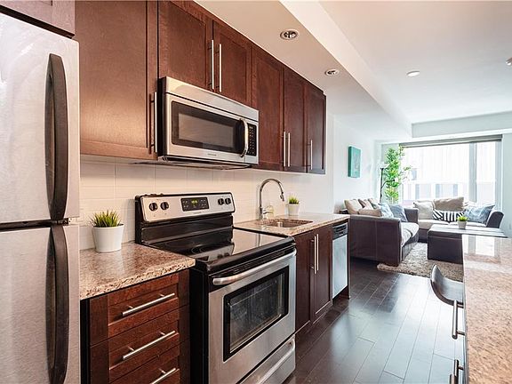 Calling all urbanites! This spacious 1 bed + den (653 sf) is perfectly nestled between the Byward Market and the University of Ottawa. This location offers a walk score of 97, allowing you to enjoy all the conveniences of downtown living at your doorstep. This open concept unit boasts beautiful hardwood floors, a modern kitchen with stainless steel appliances and a large island for cooking/seating, as well as granite countertops throughout. Easy access to Metro, Loblaws, LCBO, Shopper's Drug Mart, Rideau Shopping Centre and Parliament. Underground parking and a storage locker included! Don't want to drive? The future LRT station is located steps away! Perfect for first time home buyers or investors looking for a condo near OttawaU.