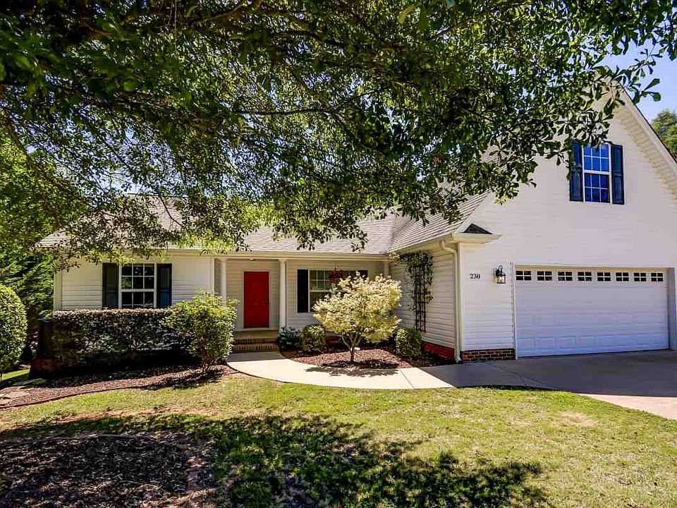 Beautiful white house on a LARGE LOT, quiet neighborhood in Inman but just minutes to WADE HAMPTON BLVD. Dining room is set apart with columns, HARDWOOD FLOORS, and an eye-catching chandelier. The spacious living room boasts a WOOD STOVE, plant shelf and CATHEDRAL CEILINGS. A sliding glass door in the living room provides access to the DECK. 2 bedrooms and a full bath are on the left side of the house. The BREAKFAST ROOM off the kitchen features a large BAY WINDOW which overlooks the back yard and TREEHOUSE! There is also a breakfast bar and plenty of counter and cabinet space along with a TILE BACKSPLASH. The kitchen includes a GAS STOVE TOP and CONVECTION OVEN, refrigerator, built-in microwave, and dishwasher. The MASTER SUITE overlooks the back yard and has DUAL WALK-IN CLOSETS, DUAL VANITIES, A JETTED TUB, and walk-in shower. The WALK-IN LAUNDRY room is off the kitchen and includes a UTILITY SINK and access to the 2-car garage. There is a BONUS ROOM over the garage with a ductless AC unit. Home has EXTRA INSULATION which makes it efficient and a large tree in front that provides shade. There are also 2 rain barrels, an apple tree and fig tree. Plus, NO HOA!