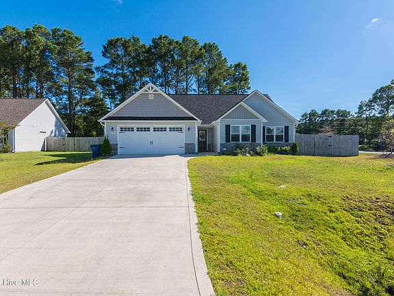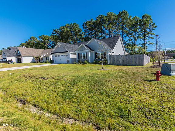 Welcome home to this beautifully maintained 3-bedroom, 2-bath gem in the highly sought-after Bridgeport community. Perfectly positioned just minutes from the beach, top-rated restaurants, and military bases, this home offers the ideal combination of comfort, convenience, and coastal charm. Step inside to an inviting open floor plan featuring vaulted ceilings in the living room, a cozy electric fireplace, and abundant natural light. The spacious kitchen boasts stainless steel appliances, a breakfast bar, and an oversized eat-in dining nook, seamlessly flowing into the living space—perfect for entertaining. The private primary suite is tucked away from the two additional bedrooms and includes a large walk-in closet and an ensuite bath with walk-in shower and soaker tub. This home also offers a laundry room and mudroom for added convenience off of the garage, a fully fenced backyard with a covered patio for outdoor enjoyment, and a two-car garage with ample storage. As part of the Bridgeport community, residents enjoy exclusive access to a sparkling pool and private roads perfect for walking, jogging, or biking. Nestled between Jacksonville and Wilmington, this home is just minutes from Topsail Beach, golf courses, Stone Bay, MARSOC, New River Air Station, and Camp Lejeune. Whether you're seeking a peaceful retreat or an active coastal lifestyle, this home truly offers the best of both worlds. Don't miss out—schedule your showing today!