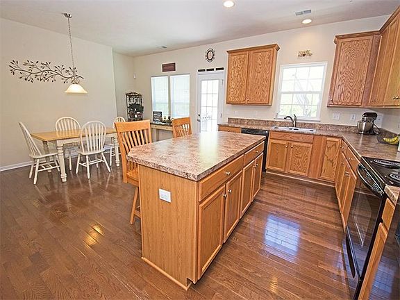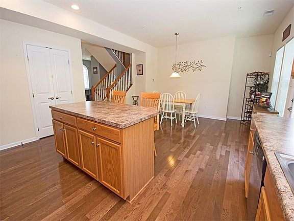 BEAUTIFUL BRICK FRONT Town Home w/bump out, only 5 yrs old, wonderful open floor plan, neutral décor through-out, MOVE-IN READY. 4' EXTENSION AND 9' CEILINGS, HUGE Kitchen features beautiful oak cabinetry, recessed lighting, pantry, island w/chair stools & GORGEOUS hardwood flooring ( all appliances are included: refrigerator, dishwasher, disposal, electric stove & microwave oven ). The Kitchen opens to the Dining area, door off of the Kitchen leads out to the HUGE DECK "great for entertaining". The LARGE Living Room features a bump out, recessed lighting & coat closet. ACCESS to the FINISHED GAMEROOM is from inside not through garage, FINISHED GAMEROOM has an extra 4' extension, recessed lighting & extra storage. Spacious 2 stall GARAGE, 2nd Floor Laundry Room, LARGE MSTR BEDROOM has an extra 4' extension, walk-in closet, ceiling fan w/light & LUXURIOUS ENSUITE, MSTR BATH has a large soaking tub & separate shower. LOW HOA DUES - HOA includes grass cutting, landscaping & playground.