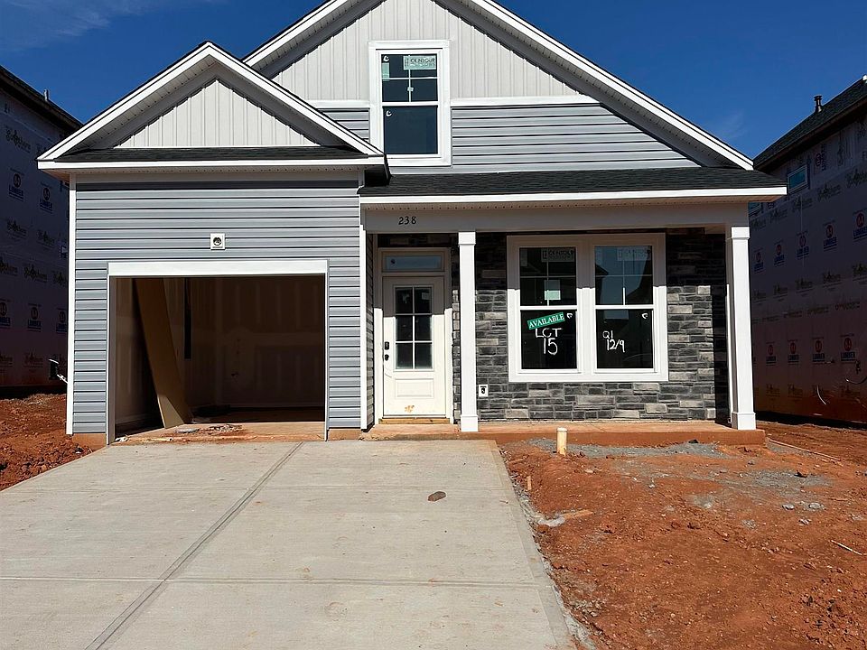 Brownstone Park, a friendly neighborhood of quality, style and convenience. Close to downtown Easley's shopping, Night life & Restaurants. You and your family will enjoy taking evening strolls & invigorating, brisk morning walks on sidewalks throughout the community. Great Southern homes beautiful Glenwood II B in Brownstone Park featuring the Primary suite downstairs that includes a walk in shower, double vanity, walk in closet. The kitchen has the upgraded island, granite countertops, SS appliances with an open floor plan into the great room and separate dining room. laundry on main living. Upstairs features 2 additional bedrooms and shared bath.