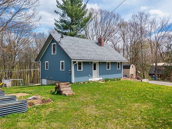 This sweet, renovated 2 bedroom cape is nestled on an acre of land in Chesterfield! This cozy home has an open kitchen/living area and so many upgrades including newer stainless steel appliances, new flooring, updated kitchen and bath, mini-splits and all new windows, doors and siding. Enter from the deck into the mudroom with plenty of space for coats, shoes and storage, then onto the kitchen with an island, new counter tops, space for a table and chairs and more! The cozy living area is bright and sunny, featuring a stone fireplace with a wood burning stove insert for supplemental heating. A small office and renovated bathroom with laundry and beautiful tile floors complete this level. Upstairs the space is split, one large bedroom and a second smaller one, both with new vinyl plank flooring and lots of light. The yard has stone walls, is open and cleared with tons of space and sun for a garden, relaxation and play.
