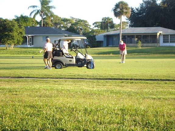 Yes! The prestigious Hills Golf Course can be your "backyard". Add in a solar heated pool and you are truly in Paradise! Meticulously maintained and updated throughout, 238 Caddy Road is truly one of a kind with open concept living. Easy maintenance tile/laminate throughout, a kitchen featuring wood cabinets, an island, and indoor laundry/pantry. The massive family room easily accommodates the pool table (which conveys with sale) and a sitting/TV area opens onto the lanai with its sought after southern exposure. Walk in closets, and the large master has a separate energy-efficient air conditioner. Main bathroom has tub/shower combination. Master bath has a walk in shower. Offering expansive views of the 16th fairway, the large lanai hosts a recently remodeled, solar heated pool with automatic pool cleaner, a built in, covered tiki bar, and plenty of room for barbecuing, dining, relaxing and entertaining. Landscaping is mature and lush with palms, fruit trees, producing pineapples, and tropical native plants and boasts privacy on both sides, while opening onto breathtaking, and often comical, golf course views in the back. New electrical panel in 2016. New 3 1/2 ton air conditioner in 2017. SCHEDULE A SHOWING BY CONTACTING PAM CORT: 941 830-1415