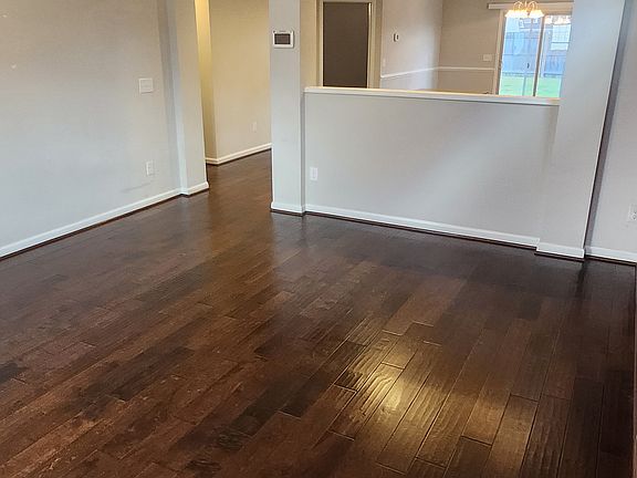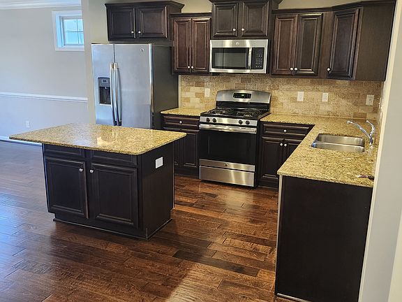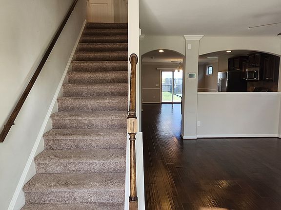 Sidewalk community offering beautiful 3 bedroom, 2 1/2 bath home with primary on main level. Front entry opens up into the family room that connects to a stunning kitchen and large dining area. The kitchen comes equipped with stainless steel appliances and granite countertops. Included in the space are an island, refrigerator, dishwasher, and stove with a microwave over top. Beautiful dark wood flooring flows throughout the home, with carpet upstairs and in the primary bedroom. All 3 bedrooms have spacious walk-in closets and the rest of the home has generous storage space throughout. Entering through the garage will give you a half bath straight ahead and a drop off area to the left next to the laundry room. Property has large fenced in yard with a patio perfect for privacy and relaxing! Pets to be considered.