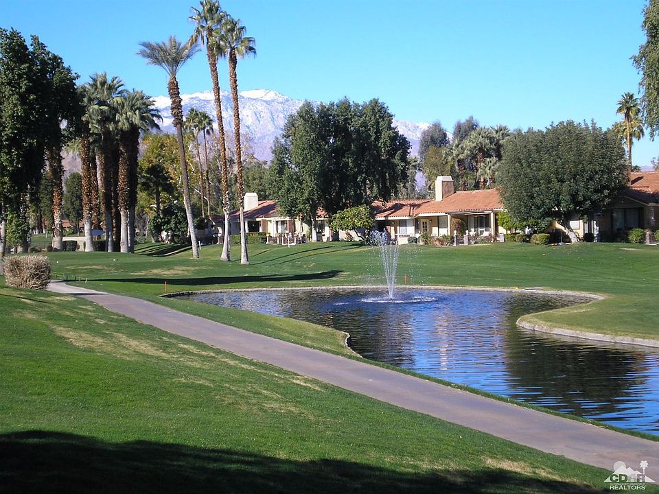 Highly sought after 30 Max Plan in Monterey CC. Beautiful mountain, fairway, and water views from your private patio. Spacious living areas, vaulted ceiling in living room. Neutral carpet, paint and tile in living areas. Double sinks in both baths, attached 2-car garage, separate laundry room. With 27 holes of golf, 18 tennis courts, pickleball, and 37 pools, come see why Monterey CC is one of the most popular clubs in the desert. Don't miss this opportunity!