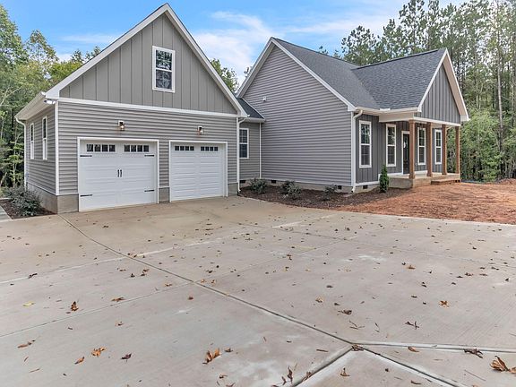 Imagine living in a brand-new, modern custom farmhouse on a sprawling 9.5-acre tract in a picturesque country setting, with Sandy Creek running along the back of the property, providing you with your own personal recreational oasis. This stunning home features a full front porch, a formal dining room or flex space, an open kitchen and family room area with a cozy fireplace, and a layout that includes a front bedroom and a rear primary bedroom. The third bedroom is located above the garage and comes with its own full bathroom, offering privacy and convenience. The kitchen and bathrooms are well-appointed with high-quality finishes. This home, set for completion at the end of August 2024, includes a generously sized deck overlooking an expansive yard, perfect for outdoor gatherings and relaxation. With no HOA, you'll enjoy freedom from restrictions and the ability to make the property truly your own. Located in a growing area with new estate homes being built, this residence sits amidst quiet, peaceful nature. It's an incredible value, just 16 minutes north of Louisburg, 20 minutes southeast of Henderson, 26 minutes to Franklinton, 35 minutes to Youngsville, and 42 minutes to Wake Forest. Plus, it's only an hour northeast of Raleigh and RTP. This is your chance to embrace a serene, country lifestyle with modern comforts and convenience.