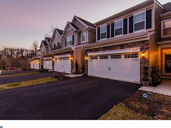 Look no further for the right house for your Buyer. If your buyer wants a new townhouse with all the bells and whistles this is the one to show. This property is less then two years old and has over $95,000.00 in custom options to offer. Located in sought after Grand At Muirwood Hill, Newtown Square. Grande At Muirwood Hill is tucked away in a lovely enclave of townhouses, and has shopping and fine dining minutes away. The current owner has spared no expense to make this property spectacular. The location in the development is remarkable and one of a kind. The view from the expanded 18 foot deck provides an incredible sunset vista. If your buyers wants a property that is completely upgraded, and professionally decorated this is the right choice. This lovely home has all the following upgrades that today's Buyers must have. Two car garage, with two outside parking spots, hardwood floors on first floor, large entry with turned staircase, tumbled marble fireplace with granite updrade, gourmet kitchen, granite counter tops in kitchen, upgraded kitchen fixture, stainless steel appliances, built in kitchen desk area, gas fireplace, expanded deck with incredible view. The lower area is walk-out and has been completely finished, with a custom bar area, large open family room streaming with natural light, perfect for entertaining. This area also has a 4th bedroom with a full bathroom 35 inch sink upgrades, perfect for a visiting guest. The second floor has a large comfortable master bedroom with a private bathroom,35 inch sink upgrade, and walk in closets, two additional bedrooms ,walk in closets, hall bath with 35 inch sink upgrade, and laundry area.