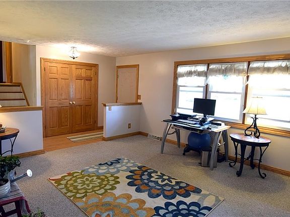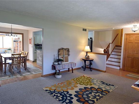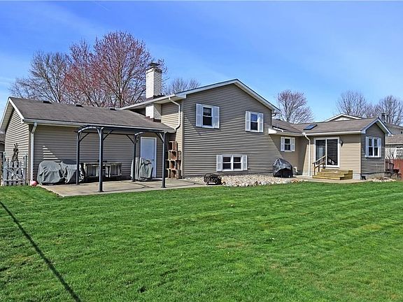 Gorgeous 3 bedroom 3 full bathroom split-level home with a contemporary country flair in Cortland! Walking in from the covered front porch is a large living room leading to the remodeled kitchen with new Schuler kitchen cabinets and Quartz countertops w/eat-up bar. The rustic tile backsplash compliments the Vigo farmhouse style stainless steel sink. A wood plank accent wall graces the dining room and leads to the sunroom overlooking the beautifully landscaped backyard with two cement patios one with a Pergola Canopy. The lower level of the home finds an additional family room complete with brick fireplace a full bathroom and French doors leads to an office or mudroom with water hook up for possible sink or wet bar. The spacious upstairs bedrooms each provide their own character with a full bathroom and tub. The large master bedroom includes a private bath. Laundry and additional storage are also located at the basement level. Other noteable items: Furnace 2017, HWT 2017, Windows: 2008