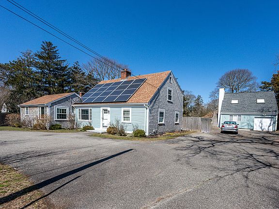 Amazing opportunity!! Back on market -due to financing! This charming, bright 1680 sq ft Cape home has 4 bedrooms, 2 1/2 baths and also comes with a detached 775 sq ft garage with a 2-story apartment. The apartment has 1 BR and a full bath (Passed 5 bedroom septic). The main house has an updated kitchen with granite counters, island, breakfast bar and dining area. Off the kitchen is a half bath and a laundry room with a door to the huge composite deck and fenced in yard. The living room has a beautiful stone fireplace and a built-in desk area. There are two bedrooms on the first floor, one has an attached full bath and there are two additional bedrooms on the second floor with another full bath. The garage apartment has a full kitchen and living area on the first floor and a large bedroom, sitting area and full bath with laundry on the second floor. There is even room to park one car in the garage bay. There are sliders on the second floor which lead to the deck and exterior staircase. This fabulous, updated home also has solar panels which are paid off! The Sellers have done so many improvements here...All of this is just 1 mile to Craigville Beach!!