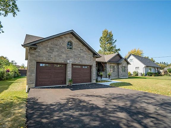Beautiful 1600 square foot stone & vinyl bungalow with large two car attached garage. Situated on a gorgeous & very hard to find 80 x 118 foot lot. Home features 3 bedrooms, 2 bathrooms, main floor laundry, master bedroom with walk-in closet & 5 piece ensuite bath with glass & tile walk in shower and relaxing soaker tub. Other noteworthy features of this home include: 9 foot ceilings, gas fireplace, two solar tubes for lots of natural light, central air, 200 amp service, updated kitchen countertops & backsplash. There is also a large covered front porch as well as a spacious covered rear patio for all your entertaining needs (both poured concrete). This home is centrally located with easy access to the highway & Peace Bridge. A short walk to the Lake, friendship trail & all in-town amenities.