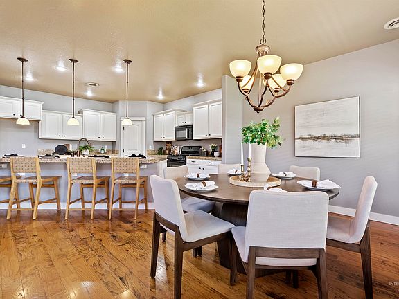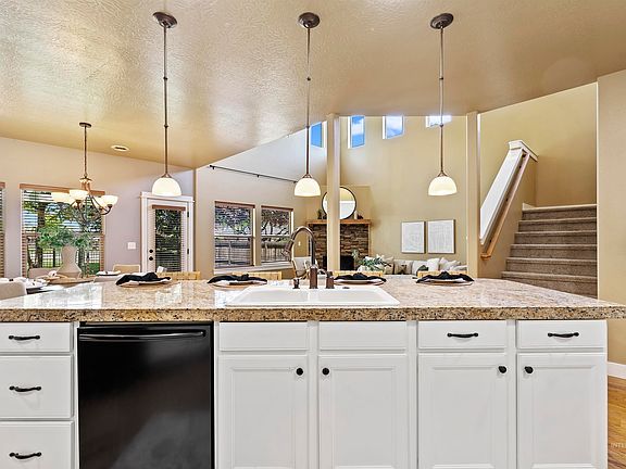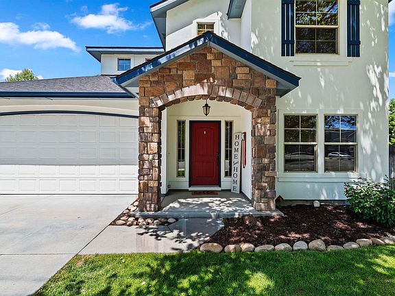 Step into this immaculate home on a hard-to-find lot, backing up to a serene common area with room for everyone. Stylish hardwood floors lead to the open-concept kitchen, which boasts a large center island, granite counters & walk-in pantry – perfect for entertaining! Stunning stone-stacked fireplace with soaring 20-foot ceilings & Juliet balcony leading to a flex landing space. Spacious primary suite featuring a double vanity bathroom with a relaxing soaker tub, a step-in shower & large walk-in closet. Main-level bedroom functions as an at-home office. New carpet throughout! Dedicated laundry room with folding table & central vacuum for effortless cleaning. Oversized 3-car garage with 47' deep tandem bay for bikes, tools & more! Year-round enjoyment in the fully fenced yard with mature trees, a shade pergola, community pool & parks. Peaceful NE Meridian neighborhood within walking distance of local schools with easy access to the Chinden/Eagle Rd corridor for outdoor adventures. Idaho living at its best!
