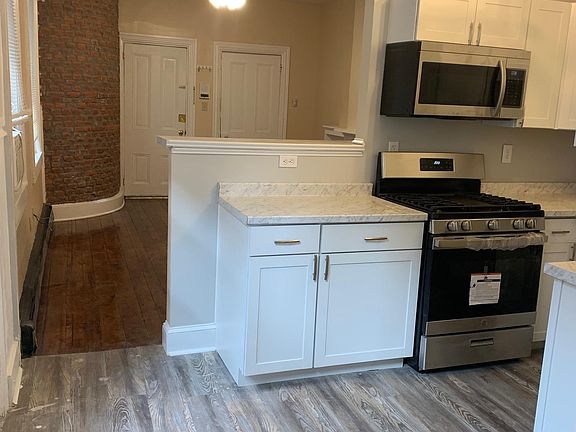 Newly Renovated 1st floor apartment . It has new paint, floors, lighting , ceiling fans, and more! The new kitchen has all new cabinets and counter tops, appliances and a custom built mini bar! Kitchen has a gas stove and an over the range stainless microwave, and a dishwasher. Bathroom has a ADA shower, newer toilet, new vanity and medicine cabinet. The living room has a brick feature wall, built in book cases. All the flooring is newer with the exception of the original hard woods. The hardwoods have been refinished and are beautiful! The bed room has a large closet. Water , sewer trash and HEAT is included. No smoking! Cats okay with additional pet fees and they must be registered and approved through petscreener The rent is $1050.00 and includes the on line payment discount. We do not accept Zillow applications. We will perform a back ground check. Absolutely no evictions or tenant landlord cases on file. minimum credit score of 600. Our application is available to applicant AFTER you tour the apartment. We are a small company and know all of our tenants by name!