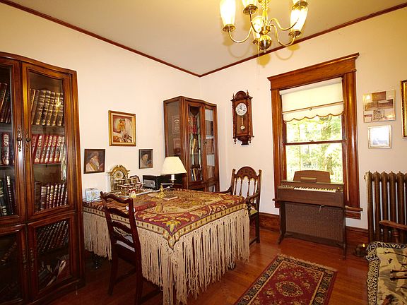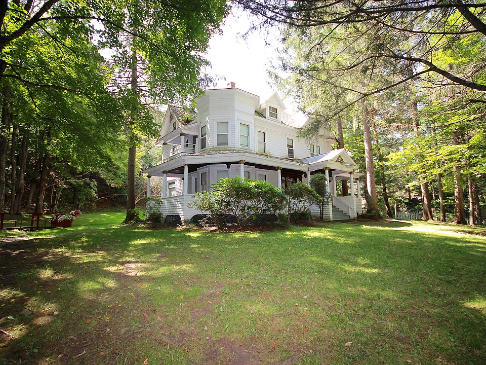 Once in a Life Time Opportunity Beautiful Victorian Mansion All Original Oak Woodwork Original Wood Burning Fire Place 14 Rooms total With 9 Bedrooms 4 Bathrooms Living Room Large Dining Room Two Kitchens The Large Wrap Around Porch overlooks the Mountains Gazebo Pond With Fountain and Goldfish Basement has 4 More Semi Finished Rooms One is a Laundry Room. the Craft man ship in this home is truly unbelievable