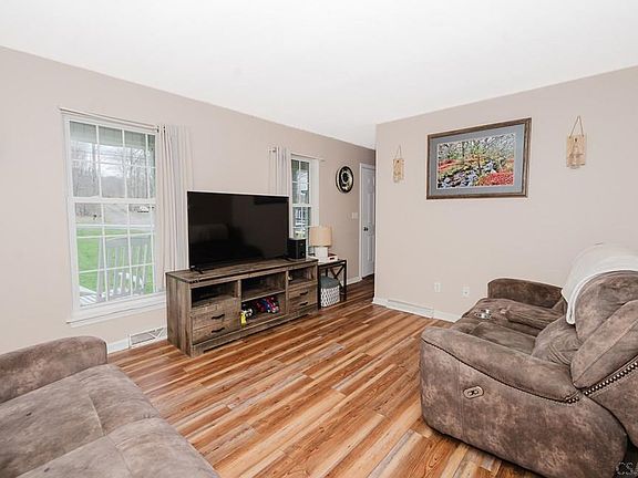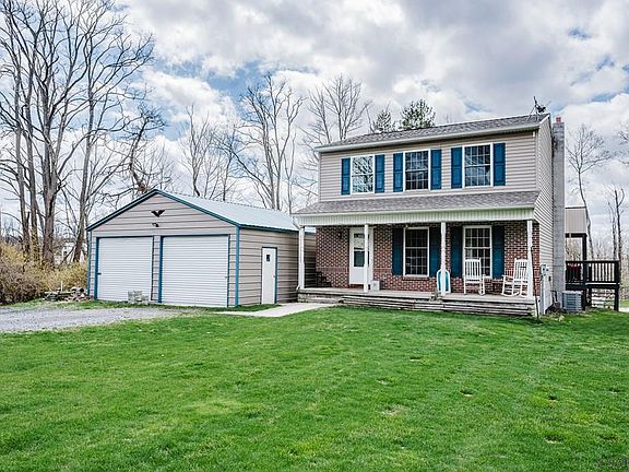Move-in ready 3-bedroom, 1.5-bath vinyl-sided home on 4.4 acres in Penn Cambria School District. Built in 2008, this two-story features an eat-in kitchen with ample cabinet space, open to the dining area with sliding door access to a covered deck. Updated bathrooms, master walk-in closet, and fresh paint throughout are just a few features. Newer propane furnace and central air (2022). Utilize the finished bonus room in basement—great for an office, gym, or storage. Enjoy the flat yard, large shed, chicken coop, and detached 2-car garage. Public utilities! Property backs up to Jamestown Rod & Gun Club—perfect for outdoor enthusiasts!