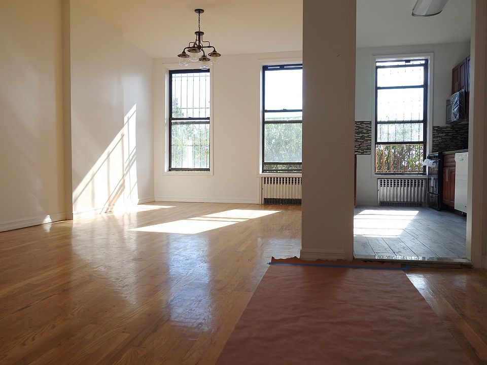 If you love having everything at your doorstep, an endless selection of dining, nightlife and shopping, if you love fantastic Prospect Park, the Barclay's Center, Brooklyn Academy of Music and more, this is the perfect new home for you! Supersized, sunny, 4th floor, 1400 sq ft loft style 3 bedroom 1 bath in the heart of Prime Park Slope. Beautifully renovated with hardwood floors, soaring ceilings, an enormous living room and dining area with sleek designer lighting. Showcasing a brand new stylish kitchen with all new appliances including dishwasher, granite countertops, glass tile backsplash, abundant cabinetry and unique textured porcelain tile floors. Adjoining the kitchen you will find a laundry area with washer/dryer hookups. Huge master bedroom, queen and full size bedrooms, great closet space including 2 walkins. Zen grey modern bathroom with skylight, unique textured tile work and featuring rainfall showerhead. Step outside to the the nearby Atlantic Center with 10 trains, 2,3 Express trains, a mega selection of cuisine and your neighbors Sugar Cane & Woodland Restaurants, and non-stop fun! Perfect for roommates. available immediately.