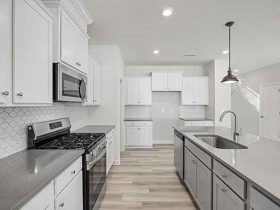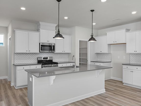 This Adalynn plan features a bedroom and full bath downstairs. Primary bedroom suite, loft and remaining 2 bedrooms and bathroom are upstairs. Features include, gas range, quartz counters, open stair rail, added windows, EVP throughout the first floor, spacious pantry and some much more!