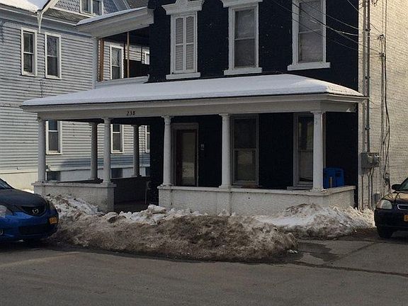 Solid brick home, great for homeowner or investor. Great rental history bringing $18,000/yr. Unit 3 does lawn/snow care for lower rent. 1st fl oil boiler/radiator, upstairs electric baseboard. Large 2 car garage could be another rental income. Plenty of parking. Seller furnishes stoves & refrigerators, washer/dryer hookups for downstairs unit. All units are month to month.