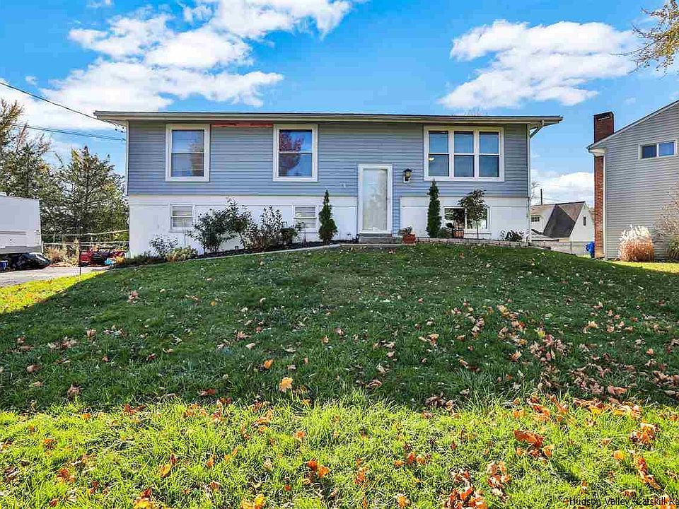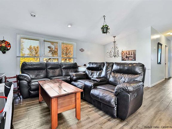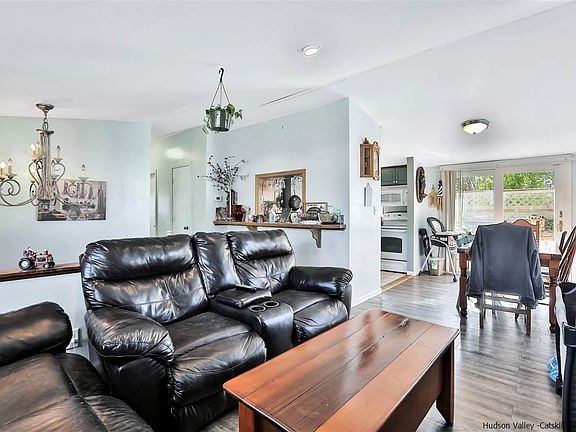 Location, Location, Location. Raised Ranch situated minutes to Kingston, Rhinecliff Bridge, miles to the New York State Thruway at Kingston. Less than 60 miles to Albany and less than 90 miles to Manhattan. A great residential location with a charming home at a competitive price. This home sits on .20 acres and offers a spacious open layout. Enter into the entry foyer and take stairs to sun-drenched living room with efficient ductless heating and cooling unit, dining room and open kitchen, with access to the rear deck. The main floor also features three bedroom, including primary bedroom and two full bathrooms. The lower level features a family room/4th bedroom and access to the 2-car garage.