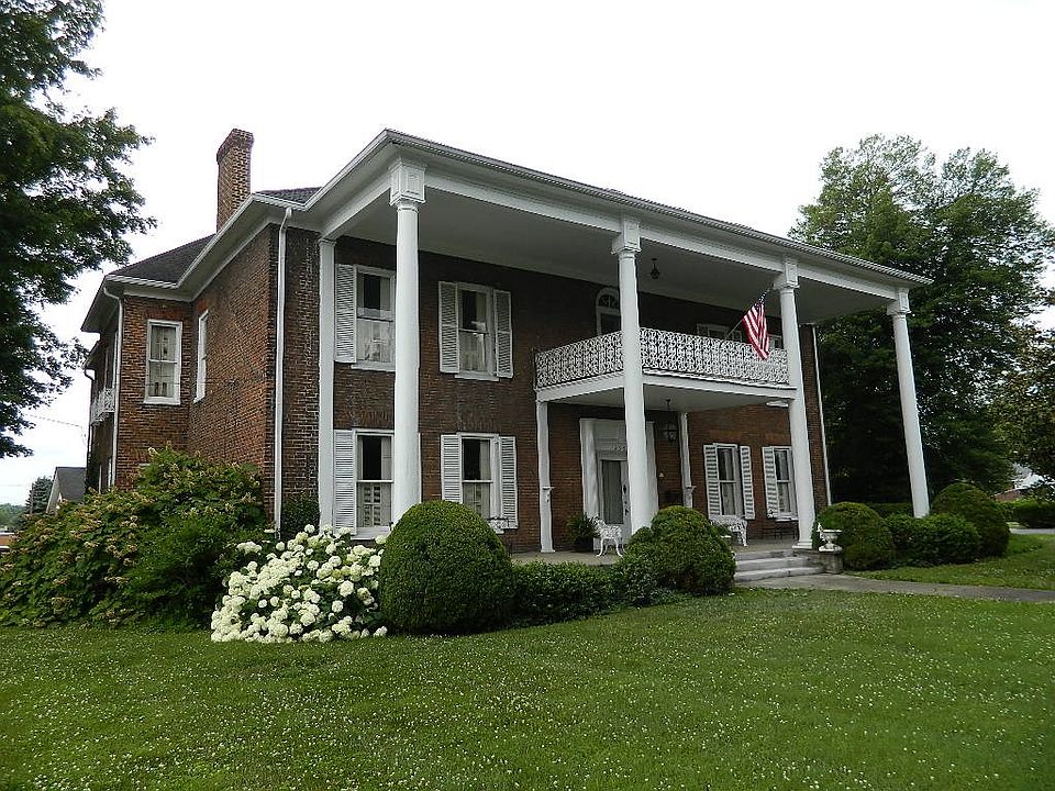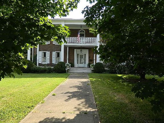 The home has sixteen inch thick brick walls that rest upon the sturdy eighteen inch thick stone foundation. Each room is twenty feet square just off the wide hallway that extends forty feet from the entry while the ceilings are eleven feet high. This stately home has 4540 square feet and has been lovingly maintained featuring massive rooms including a large living room and parlor, a formal dining room, a sunroom, three expansive bedrooms, and a welcoming foyer. Some of the original details that remain in the home are abundant crown molding, eleven foot ceilings, original hardwood floors, beautiful chandeliers, six wood burning fireplaces, and large front porch with columns. Central air conditioning and an in ground pool add the perfect modern touches and conveniences. This spectacular home is on the National Register of Historic Places.