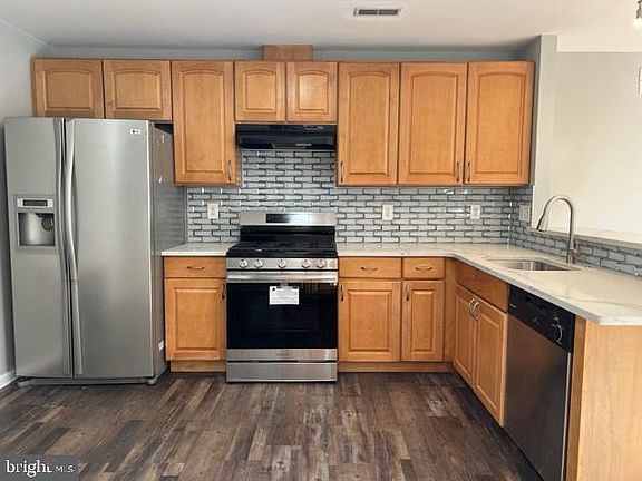 This newly renovated 3 bedrooms, 2 1/2 baths Carmelita style at Hidden Mill Estates, built in 2004 sits on a quiet street.  Spacious kitchen with new quartz countertop with island and breakfast bar with backsplash along with new stove.   Vinyl flooring for kitchen. Open dining and living room, with hardwood floor with French door leading to a refinished deck.  Powder room on 1st level. Three big bedrooms upstairs with master bathroom. Brand new carpet on 2nd level and basement stair. Lots of natural light. New paint throughout the house.  Close to major highway and shopping. Make your appointment today.