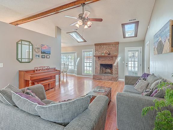 No HOA! Pride of ownership is shown in this former model home. It is a move-in ready home. In convenient College Park Estates. As you approach you will notice the large corner lot with mature trees and an extra parking pad. Upon entering you will be greeted in the large family room. It has beautiful wood laminate flooring and a wood burning fireplace as well as a cathedral ceiling to include a skylight, a wood beam and a ceiling fan. It is open to the dining area of the eat-in kitchen. It has a ceiling fan, chair molding and a bay window for tons of natural lighting. The peninsula has a stainless sink and breakfast bar. The kitchen also offers a tile backsplash. The appliances are stainless and include: a built-in microwave, a dishwasher and a smooth top range. The primary bedroom has cozy carpet and a ceiling fan. The barn doors lead to the master bathroom to include: a vanity area with a beautiful bowl sink and makeup area. The walk-in closet is just to your right. The room just to your left includes a standing shower, toilet and window for natural lighting. You will also find two additional bedrooms with cozy carpet and ceiling fans. The hall bathroom has a tub/shower combo. The laundry room with the above cabinets for extra storage is conveniently located off the garage. As you exit to check out the backyard, you will find the large screen porch with a ceiling fan to be perfect for enjoying the outdoors bug-free. The fenced backyard offers lots of green space for family pets. The location is just amazing! Walking distance to schools, restaurants and shopping. Just minutes to Goose Creek, Summerville and Ladson. The convenient access to I-26 makes a quick drive to Volvo as well as the airport, downtown Charleston and the beaches!