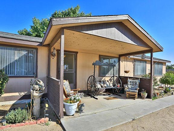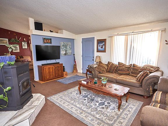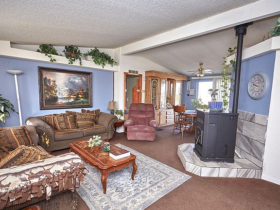 Room for horses! 4 bedroom 2 bath plus a den or use as a home office. 1716 SF. Split floor plan. 2.34 flat acres. Fenced sides and back yard. Beautiful new pellet stove in living room. Dining room has a large built in hutch. Large Kitchen with plenty of cabinets, pantry and beautiful new vinyl flooring. Washer, dryer and refrigerator stay. Large master bedroom with a big walk in closet. Vented evaporative cooler system. Covered back patio with grass area and separate fenced garden. Double detached garage with tons of storage cabinets. This is a very nice property, don't miss out on it.