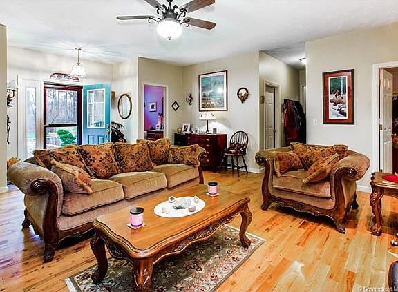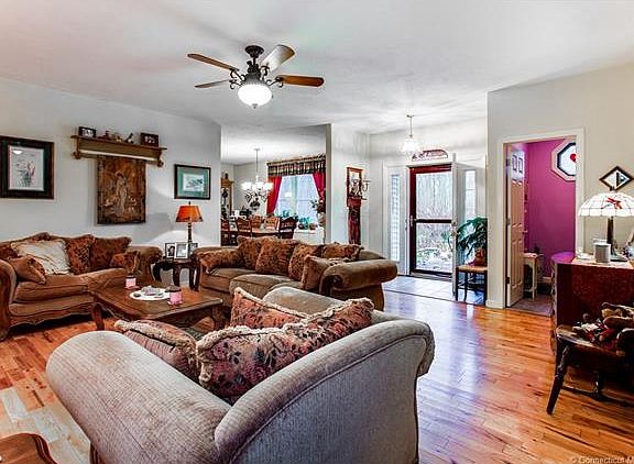 Located on a quiet country road in Pomfret this secluded property includes a 5.43 ac. lot with a custom built ranch with over 2600 sq ft of living space. Eat in kitchen, formal dining room, fireplace in living room, hardwood floors and more!!! Three season porch which leads to a fenced in area. Three bedrooms and 2 full baths on the first level. Master bedroom suite includes tiled bath with large shower, soaking tub and double sinks. Large walk in closet. The attic is finished which could be either family room, office, or studio. This property has many possibilities.