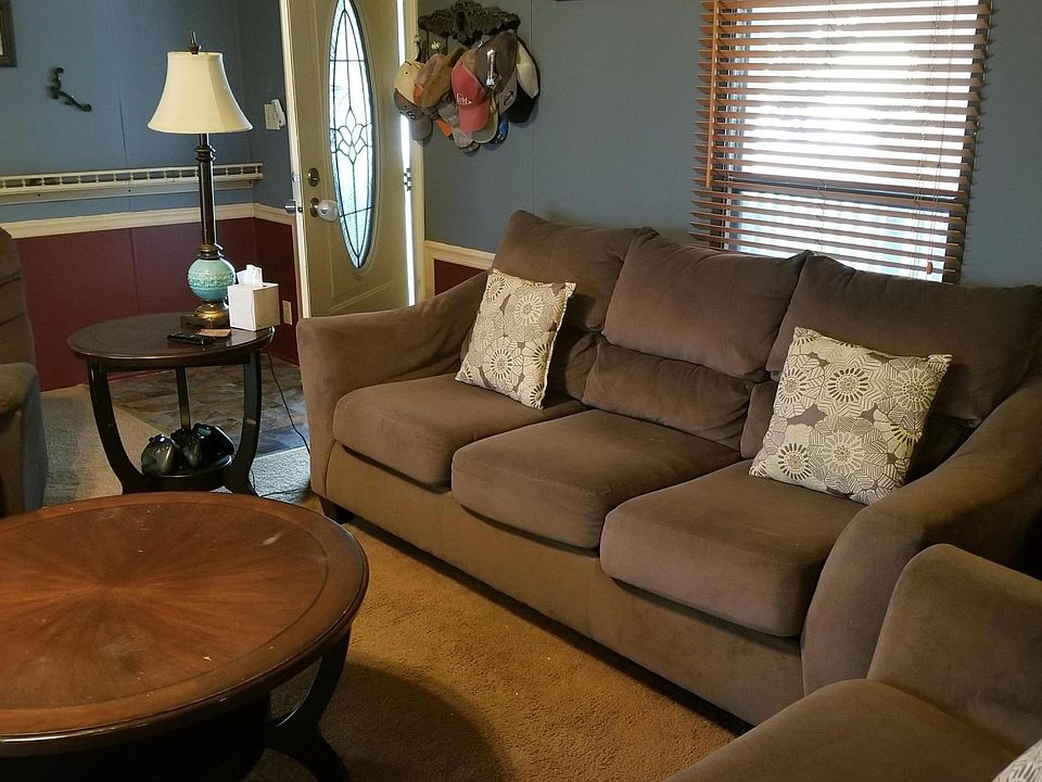 Park in your 2-car carport, walk directly to your beautiful covered over-sized front deck, (12 x 33), where it is perfect for sitting outside in a quiet, established park. Open floor plan with built-in china cabinet in the kitchen/dining. New flooring in kitchen, and newly refinished counter-tops. Large back deck and 10' x 12' storage shed will stay and has been wired with power. Garden tub in master suite; second bathroom in hall also accessible from bedroom. Both bedrooms have nice size closets. Utility room is spacious with washer/dryer that stay. Metal roof added over mobile home. Lot rent is $220/mo. and covers water/sewer/trash. Minutes to Branson Landing, Historic Downtown Branson, Lake Taneycomo and Hollister schools. All measurements are approximate.