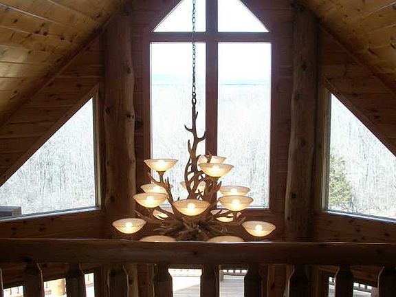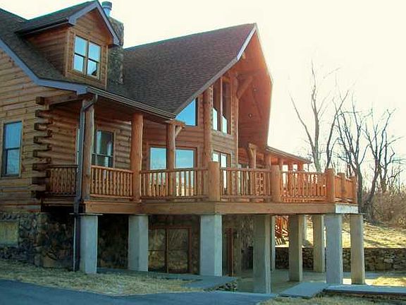 Who said they were searching for that perfect home next to State Land? Well here you have it! Unique Log Home Chalet on over 5 acres. Mountain views, privacy, large rocking chair porch, entertain on huge deck and potential for more of your vision. Open floor plan is spacious and features granite kitchen for the chef, breakfast bar, sunny dining area, formal dining area, great room, fireplace, and unique features you won't find in just any home. Master on main floor with private bath including designer tile work and claw foot tub! Two additional bedrooms with their own bathroom upstairs and a family room area. Built in 2007 with all bells & whistles! Barn is housing chickens! So much to see!