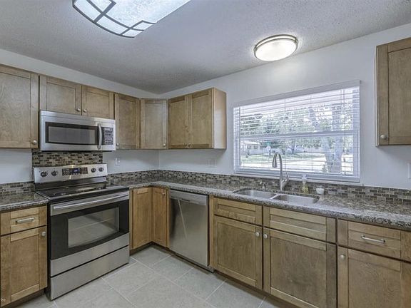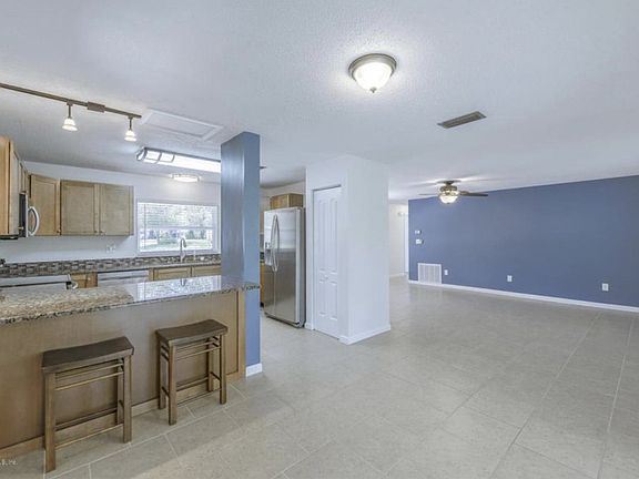 Breathtaking lake views and gorgeous new upgrades describe this one story family home featuring three bedrooms, two baths and oversized private backyard overlooking a picturesque lake. Gourmet kitchen features granite countertops, upgraded appliances, all wood cabinets, quality ceramic tile floors, and a snack bar that overlooks the dining area. The open and spacious kitchen, which seamlessly meshes with the great room, is ideal for entertaining.